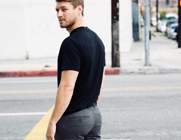 There are two types of collars for essential t-shirts - the rounded collar and the v-neck. It’s up to you on which you choose, but we find that the crewneck collar looks great on every guy, and it’s more versatile too.