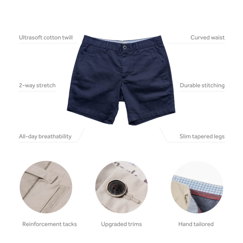 Constructed to be slim on the legs while providing ample room in the crotch area for all-day comfort, our shorts not only enhance your body silhouette but also make you forget you're wearing them. Just like our chinos, they perfect your look, especially by perking up your butt.